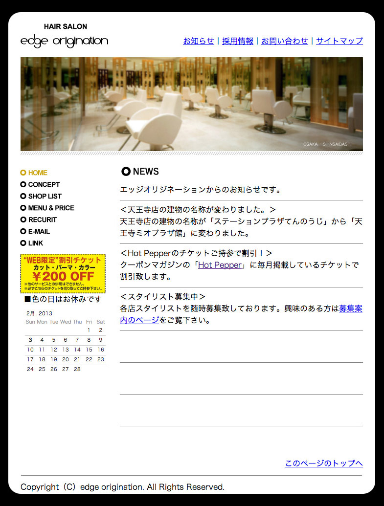 ヘアサロン|エッジオリジネーション edge-origination Posted date:2013/02/03 http://www.edge-origination.com/ ヘアサロン|エッジオリジネーション edge-origination ヘアサロン|エッジオリジネーション edge-originationのホームページ PAGE LINK !